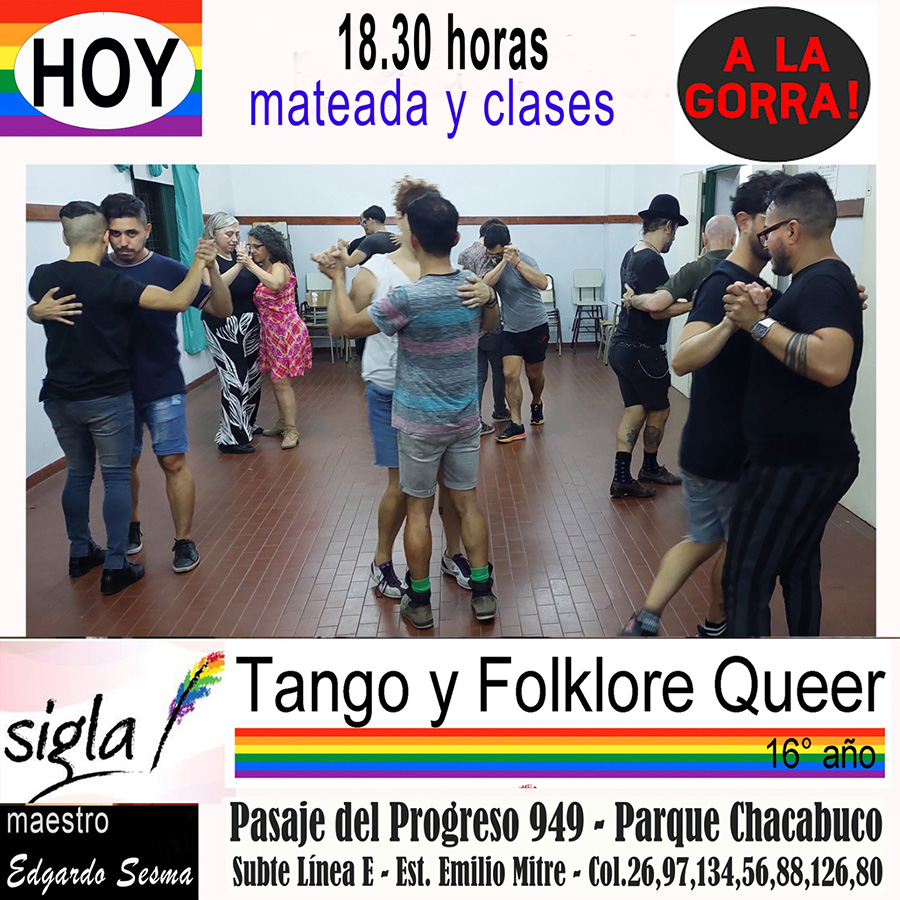 EFS: Sí, son espacios muy pequeños. Los podemos sostener porque son espacios que lo posibilitan más allá de lo económico, nos abren sus puertas y no nos cobran un alquiler, por ejemplo. Cualquier lugar te exige cobrar entrada y darles un porcentaje, en estos lugares yo puedo no cobrar a quien no puede pagar. Está bueno que existan esos lugares, así podemos hacer esto. En Muchaches, en El Despelote, siempre hacemos clase de tango antes del baile, también en SIGLA, los domingos. ¡Vení cuando quieras!