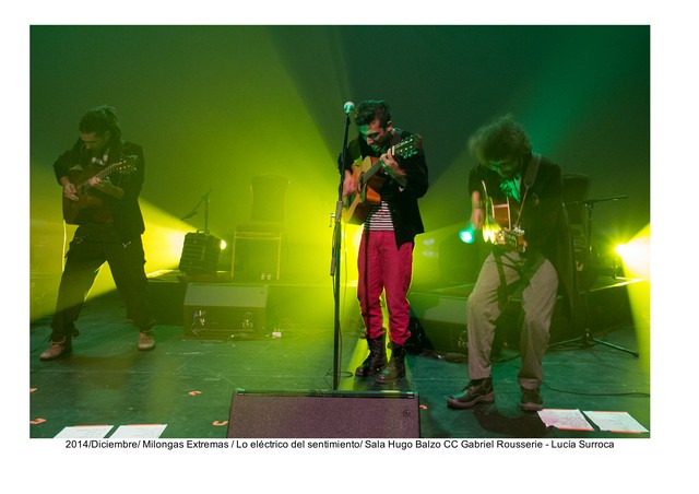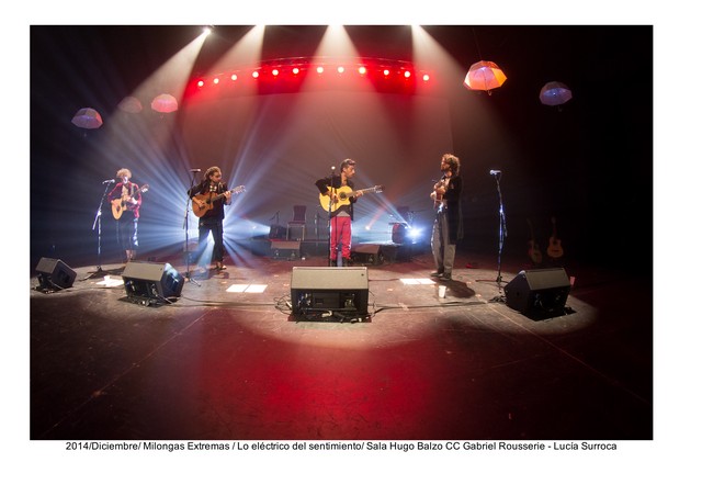 Por: Christian Martínez Foto: Lucía SurrocaPor asociación quizás alguien desprevenido podría deducir ¿Milongas y Metal Extremo?, ¿Milongas demasiado telúricas solo recitadas por gauchos? , ¡error!. El nombre del grupo se origina por la afición de la banda española Extremoduro, porque interpretan canciones de la banda de rock español en clave de milonga rioplatense. Además es el nombre homónimo de su primer y único disco editado en 2012. Actualmente se encuentran trabajando en nuevo repertorio propio y han registrado en video en diciembre del año pasado su espectáculo «Lo eléctrico del sentimiento», en la Sala Hugo Balzo del Auditorio Nacional del Sodre , un concierto grabado a 5 cámaras.