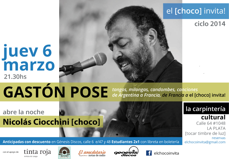 Nicolás Ciocchini “Choco” es músico y como muchos de sus pares también es activista musical y gestor cultural. Con su ciclo “el [choco] invita!” lleva todos los meses artistas a La Plata a encontrarse con un público cada vez más entusiasta.