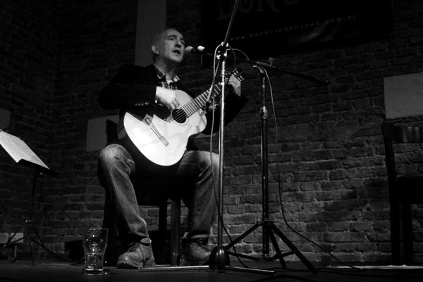 Entonces, en aquel momento no me presentaba de manera solista. Mi otros grupos de disolvieron al mudarme a Buenos Aires, y el grupo de tango se fue reduciendo, desde el cuarteto que fue inicialmente se redujo a trío, a dúo y lo tratamos de sostener durante un tiempo, pero no era fácil. Al poco tiempo de venirme a Buenos Aires empecé a trabajar en un quinteto en uno de estos lugares de “cena-show”. Ahí conocí a varios músicos, eso duró un año y medio. Durante un tiempo acompañé también al dúo Fuertes-Varnerín, como guitarrista.