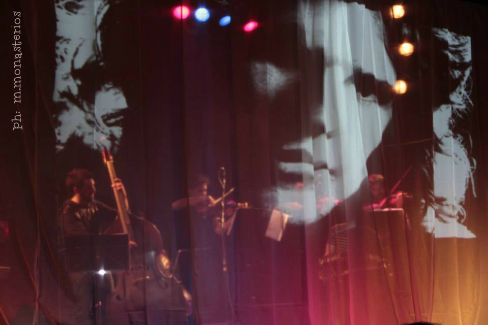 Sonaron también «Madera Blanda» y «Poema en milonga». Momentos de gran belleza trajo la cautivante presencia de La Maga (María Eugenia Della Latta) durante el espectáculo. En los temas finales participaron Matías Grande (violín), Ernesto Gómez (violín), Pablo Carreras (viola) y Cecilia Basto (cello). Finalizando la pieza basada en el poema Álbum con Fotos de Cortázar, La Maga se encargó de correr un finísimo telón blanco sobre el cual después proyectaron la imagen de Luis Alberto Spinetta. Aún puedo ver las manos de Ruggiero dirigiendo a las cuerdas detrás de ese velo.